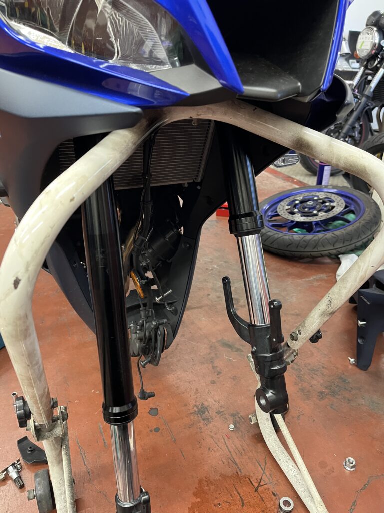 今回はYZF-R25のフォークオーバーホール作業を実施させていただきました。